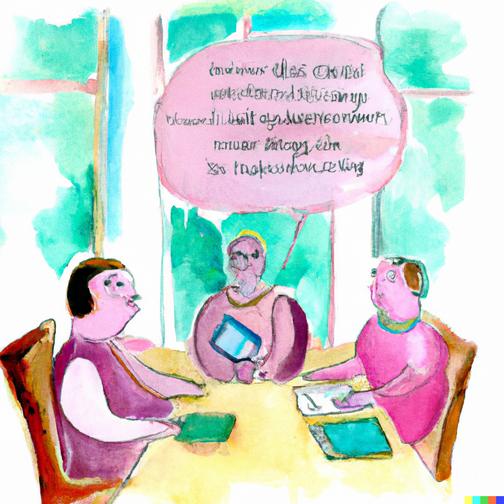 - a watercolor painting depicting the first meeting of faculty librarians to discuss AI platforms