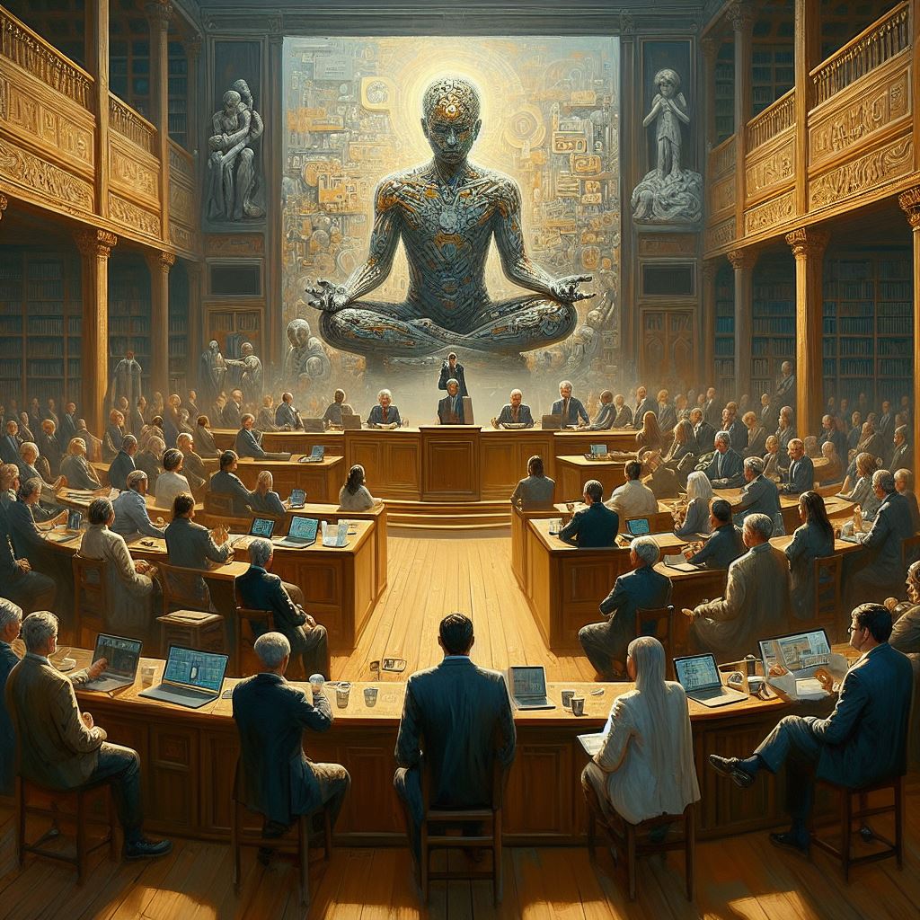 - first meeting of librarian faculty to discuss AI platforms workshop as oil painting by a classical painter