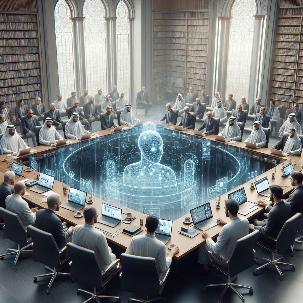 - photo-realistic depiction of the first meeting of librarian faculty to discuss AI platforms workshop