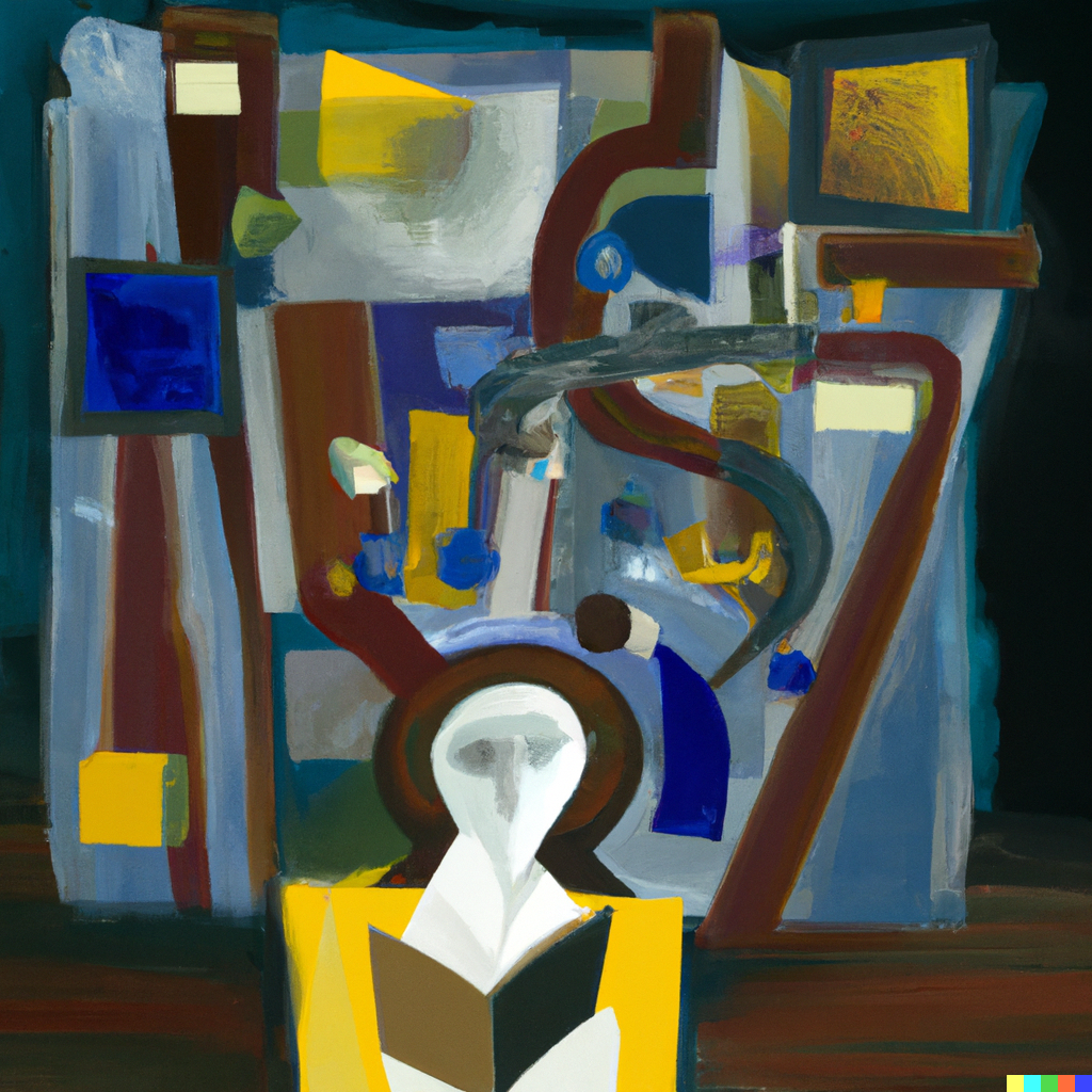 - an abstract painting showing what it looks like to be a profound librarian with profound learning as a way of life